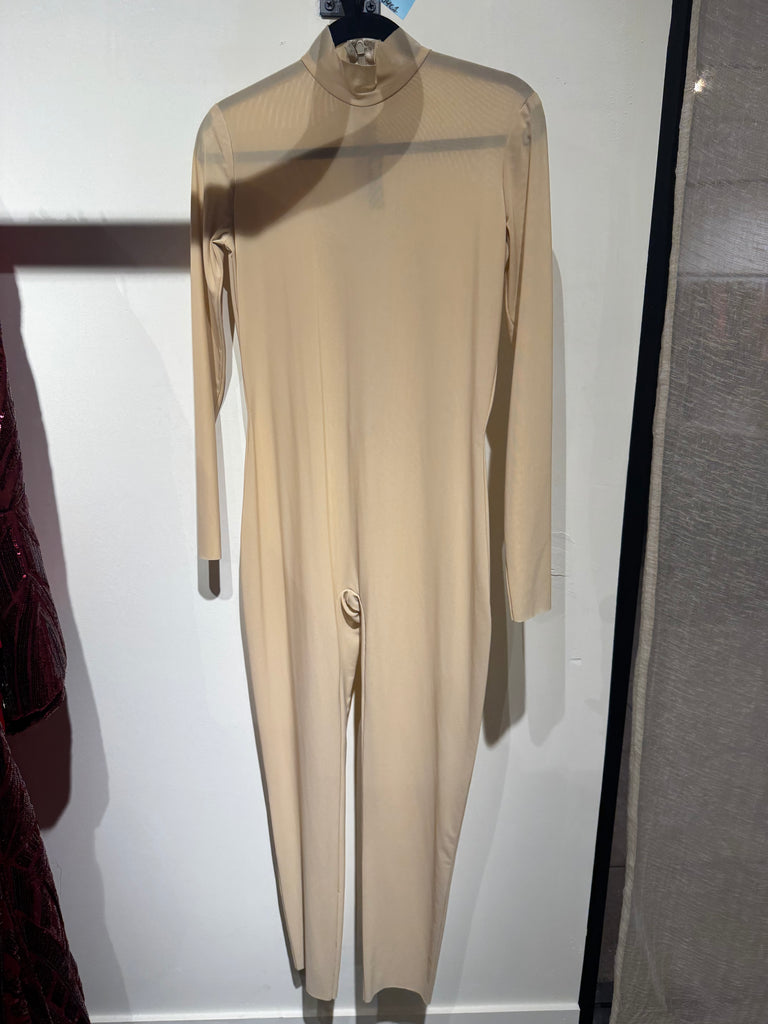 Nude mesh long sleeve catsuit